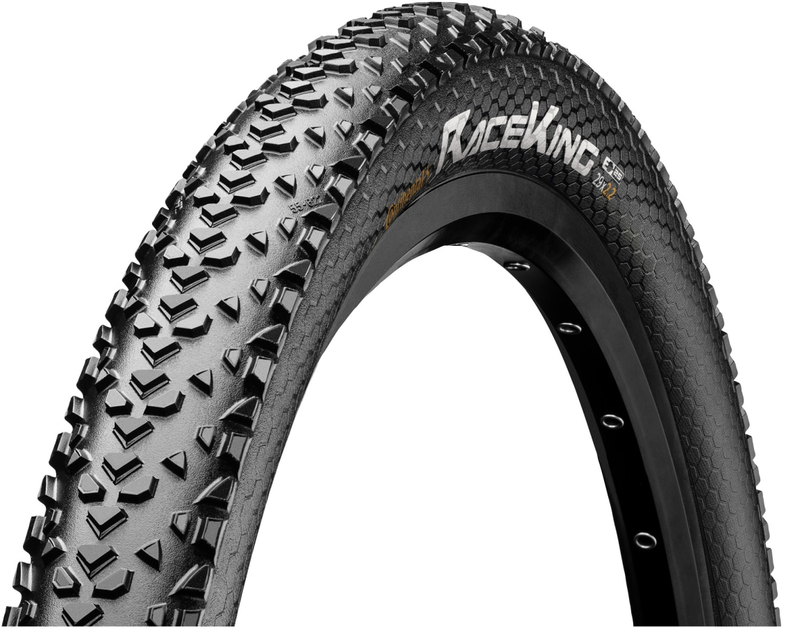 Continental: For the skilled: A hearty tyre that wants to be racedBuilt for racers who demand speed and control, the Continental Race King delivers top performance across cross-country and marathon disciplines. Its low-profile tread pattern ensures rapid acceleration and minimal rolling resistance, while the voluminous casing provides natural damping for traction and comfort. Reliable and consistent, it’s the choice of XC World Champions for hardpack and dry trail conditions.Features • Fast-rolling XC tyre for dry and hardpack terrain • Low rolling resistance with excellent grip through corners and straights • Lightweight construction with 180 TPI casing for improved comfort and control • PureGrip compound delivers long-lasting performance and reliable traction • Compatible with hardtail and full-suspension race bikes • Easy inflation and setup for reliable everyday useSpecifications Tyre: Race King 27.5 × 2.0 | Code: 0150430 | Size: 50-584 | Weight: 640 g | Rec PSI: 50 | Max PSI: 65 | Compound: PureGrip | Tubeless: No | Casing: 3/180 | Colour: All black | Bead: Rigid Tyre: Race King 29 × 2.0 | Code: 0150431 | Size: 50-622 | Weight: 705 g | Rec PSI: 50 | Max PSI: 65 | Compound: PureGrip | Tubeless: No | Casing: 3/180 | Colour: All black | Bead: Rigid Tyre: Race King 27.5 × 2.2 | Code: 0150433 | Size: 55-584 | Weight: 705 g | Rec PSI: 44 | Max PSI: 58 | Compound: PureGrip | Tubeless: No | Casing: 3/180 | Colour: All black | Bead: Rigid Tyre: Race King 29 × 2.2 | Code: 0150435 | Size: 55-622 | Weight: 750 g | Rec PSI: 44 | Max PSI: 58 | Compound: PureGrip | Tubeless: No | Casing: 3/180 | Colour: All black | Bead: Rigid